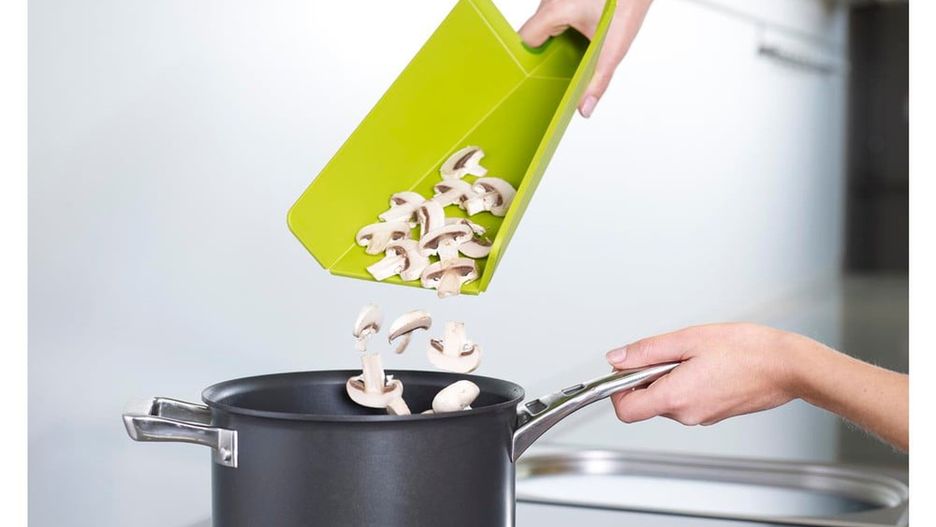 To zwyczajna plastikowa deska do krojenia, która swoją niezwykłą moc ujawnia, kiedy pokrojone na niej produkty trzeba wrzucić do naczynia lub garnka. Ile to razy przy wykonywaniu tego manewru kawałki jedzenia wylądowały porozrzucane po całej kuchni? Z tą deską problem zostaje skutecznie rozwiązany. Można zamknąć jej boki tak, by cała zawartość skutecznie wpadła do garnka. Genialne, prawda?