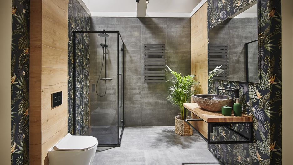 Zastosowane materiały wykończeniowe – czyli najczęściej płytki ceramiczne – stanowią stałe tło aranżacji i w dużej mierze nadają łazience charakter. Miłośnicy klasyki często sięgają po beże i kremy, a fani nowoczesnych rozwiązań – przede wszystkim po biel i szarość. Nie trzeba się jednak ograniczać do tak skromnej gamy możliwości. Coraz większym uznaniem cieszą się chociażby płytki perfekcyjnie odwzorowujące rysunek kamienia czy drewna. Dzięki nim wystrój urzeka świeżością, a naturalne akcenty budują przyjemny nastrój. W takiej konwencji aranżacyjnej warto postawić na łagodne barwy ziemi, a także wprowadzić do wnętrza żywą zieleń w postaci roślin.