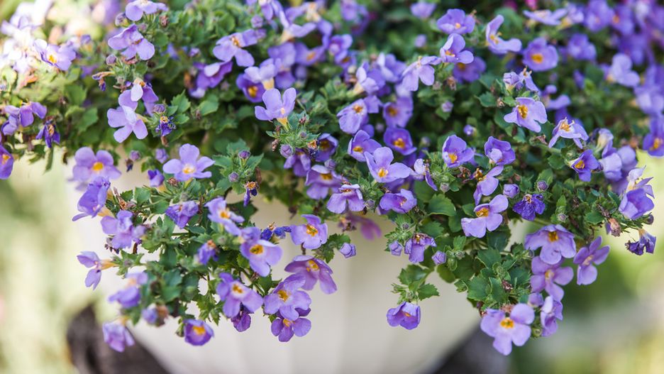 Petunia kaskadowa (zwana też surfinią) – kwitnie od czerwca do października