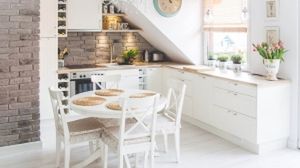 Białe mieszkanie z cegłą w roli głównej