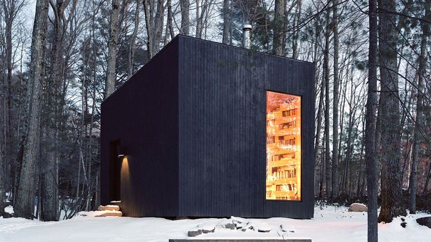 W ciągu dnia „sekretny pokój” jest jeszcze bardziej tajemniczy. Sprawia to nie tylko bryła upodabniająca go do kontenera, ale przede wszystkim precyzyjnie wykonana oblicówka zabejcowana na czarno. W zimowym lesie wygląda niepokojąco na tle bezlistnych drzew. Nowoczesna okładzina wykonana jest z deszczułek usytuowanych pionowo, co jest rozwiązaniem charakterystycznym dla tradycyjnej architektury skandynawskiej. Wygląd domu jest podpowiedzią, że budynek strzeże cennego sekretu - ukrytej pustelni miłośnika książek.