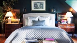 By stworzyć prawdziwą oazę spokoju, granatowy kolor ścian warto ocieplić meblami z jasnego lub średniego drewna, wikliną czy rattanem. Kolor ten dobrze komponuje się też z innymi barwami z tej samej palety, zwłaszcza błękitem.