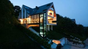 Oprócz schodów łączących dwie strefy (parkingu oraz dziennego przebywania) zaprojektowano także panoramiczną windę. Z poziomu parteru domu rozciąga się widok na zakole Wisły, a przy dobrej pogodzie jeszcze dalej - na horyzoncie można wówczas zauważyć masyw Babiej Góry.
