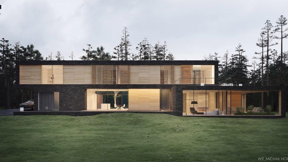 Dom Leśny to kolejny projekt warszawskiej pracowni architektonicznej 81.waw.pl. Położony na porośniętej drzewami działce budynek idealnie komponuje się z otaczającą go przyrodą. Kamienna elewacja domu nawiązuje do ciemnych pni sosen, które rosną na tym terenie. Aby zniwelować wrażenie masywności czarnej bryły, wszystkie wnęki zostały wykończone jasnym drewnem. Dzięki temu dom wydaje się również ciepły i przytulny.