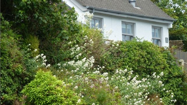 Ruiny starych kopalni i inne zabytki dzieli od "The Ink" zaledwie krótki spacer. Ale najbliższe otoczenie domu to kamienne tarasy schodzące w stronę niedalekiego morza. Sam budynek otacza gęstą zielenią ogrodu. Budynek ma zwartą bryłę, z jednej strony wbudowaną w zbocze pagórka. Białe ściany zestawiono z szarą dachówką i drewnianymi detalami w podobnym odcieniu.