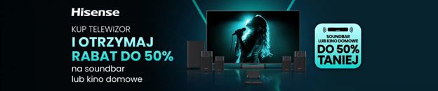 Każdy z promocyjnych soundbarów i kina domowego cechuje się bardzo dobrą jakością dźwięku, jak również pozostałymi parametrami. Estetyczny wygląd wpasowuje się w różnorodne wnętrza. Jest to idealne uzupełnienie telewizora Hisense - ciesz się kinowymi wrażeniami w własnym domu.