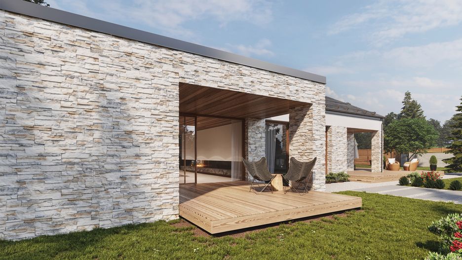 Fasadę budynku w odróżnieniu do ścian wewnętrznych zmienia się znacznie rzadziej, dlatego tak ważne jest, aby jej wygląd był dobrze przemyślany, a wybrany materiał służył na lata. Betonowe płytki ścienne charakteryzują się dużą trwałością i odpornością na czynniki zewnętrzne. Okładziną, która bez wątpienia odmieni każdą bryłę architektoniczną jest Nepal – głęboko rzeźbiony kamień elewacyjny. Również płytka Grenada o znaczniej bardziej zdecydowanej kolorystyce i strukturze ozdobi fasadę i tym samym będzie elegancką wizytówką domu. Jeśli planujemy odejść od tradycyjnego charakteru elewacji na rzecz bardziej nowoczesnej, płytka betonowa Palermo w odcieniu grafitowym, o drobnej fakturze kamienia będzie dobrym rozwiązaniem.