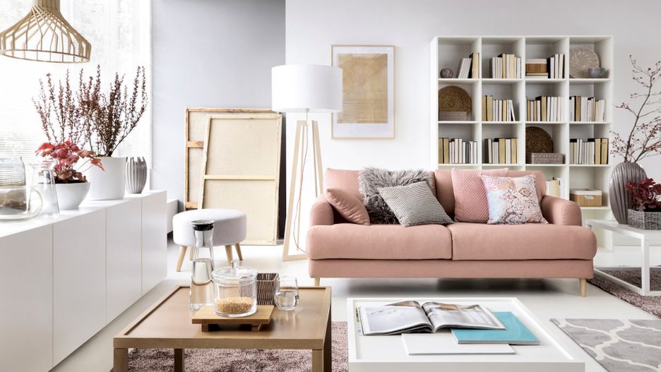 Geometryczne kształty i proste formy mebli oraz brak zbędnych ozdób to najkrótsza droga do stworzenia aranżacji w duchu ceniącego równowagę hygge. Nie musimy dobierać elementów wyposażenia z jednego kompletu. Decydując się na subtelne, minimalistyczne meble, możemy łączyć różne serie wyposażenia bez obaw o efekt. Biel, szarości, czerń czy naturalne drewno to baza, dzięki której stworzymy dowolny klimat aranżacji. Jeśli zabraknie tam jednak motywu przewodniego, zawsze można wykreować głównego bohatera wnętrza. W salonie może to być np. wygodna sofa w niebanalnym odcieniu różu.