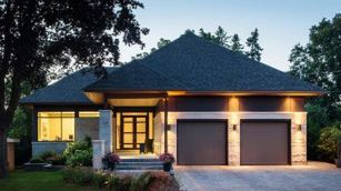 Nowoczesna architektura często wykorzystuje na elewacji odporne na zmienne warunki atmosferyczne drewno egzotyczne. Nic dziwnego - bogactwo jego kolorów i usłojenia nieodmiennie zachwyca. Drewno egzotyczne stosuje się również do wykończenia bram garażowych. Tu elewacja i wrota efektownie kontrastują z okładziną w odcieniu szlachetnego piaskowca.