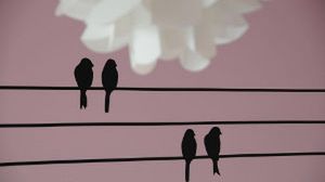 Ściana przy łóżku pomalowana na delikatny odcień różu. Na ścianie naklejone zostały naklejki z ptaszkami, które bardzo lubi właścicielka pokoju. Łóżko rozkłada się na podwójne łóżko na wypadek nocowania koleżanki. Na środku pokoju mocno fioletowy dywan, który koresponduje z kolorową tapetą.