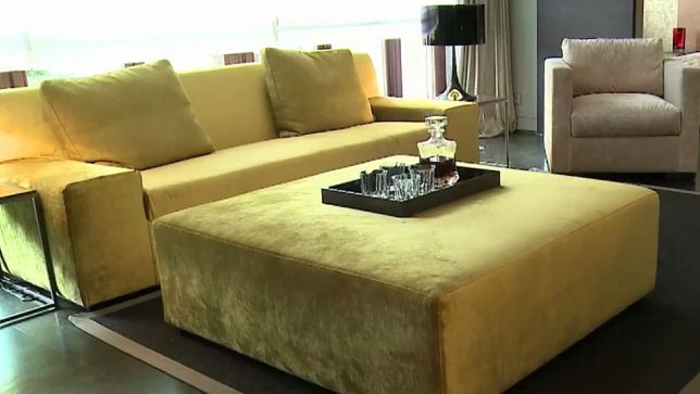 - Wyszliśmy od twórczości Klimta i zainspirowaliśmy się jego obrazami. Zaczęliśmy od punktu wyjściowego, czyli bazy kolorystycznej. Mocnym puntem w salonie miała być kanapa – ubraliśmy ją w welur o odcieniu starego złota. Do tego dodaliśmy puf, który pełni też funkcję stolika oraz szezlonga - opowiada Iwona Sołowow, dekoratorka wnętrz.