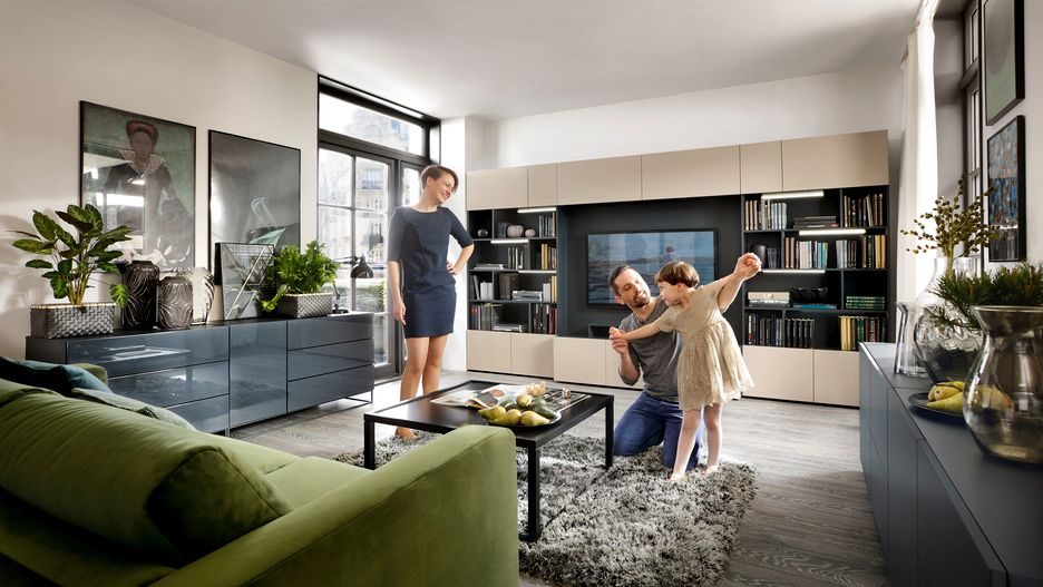 Idealne meble dla rodziny z dziećmi powinny być praktyczne i proste w obsłudze. Nowoczesnych rodziców ucieszą rozwiązania modułowe, dające nieograniczoną swobodę zestawiania i modyfikacji układu, jeśli obecny się opatrzy. Świetnym pomysłem jest łączenie kubików zamkniętych (z drzwiczkami) z otwartymi oraz urozmaicenie konstrukcji elementami podnoszącymi funkcjonalność oraz atrakcyjność, np. wkładkami dzielącymi przestrzeń wewnątrz konkretnych modułów. Innowacyjnie wyglądają też drzwiczki zakrywające jeden cały moduł oraz połowę drugiego, sąsiedniego. Taka możliwość zabawy bryłami sprawia, że wyposażenie salonu nigdy nam się nie znudzi.