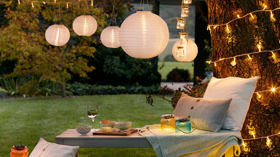 Nastrojowo będą zawsze wyglądały w ogrodzie lampiony, wykonane na wzór chińskich. Oryginalne, papierowe, nie są zbyt trwałe, ale wyjątkowo efektowne i lekkie. Podświetlić je można energooszczędnymi diodami LED. Ale znajdziemy też kolorowe i wzorzyste lampiony z tworzywa sztucznego, które nie boją się deszczu.