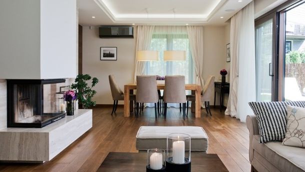 W nowoczesnym wnętrzu sprawdzi się minimalistyczny wkład kominkowy z podnoszoną szybą przednią. Dzięki niej można bezpośrednio podziwiać palenisko, jeśli tylko masz na to ochotę. Trzystronny kominek to najlepsze rozwiązanie w otwartej - tak dziś popularnej w wielu domach - przestrzeni strefy dziennej. Prosta, elegancka obudowa i kamienny postument jest najbardziej wyważoną i elegancką oprawą dla tego rodzaju kominka. Projekt: Archissima, fot. Niewformie.pl