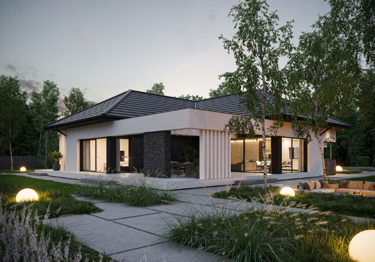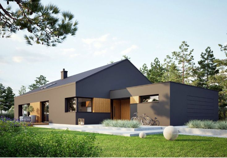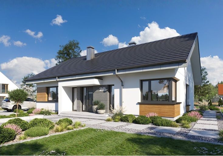 Parterowy Dom na Majowej (WBF1003) to projekt o minimalistycznym wyglądzie, wnętrzu odpowiadającym na współczesne potrzeby i niskim koszcie budowy. To nowoczesna "stodółka" z podcieniem i dużymi przeszkleniami. Dom prosty, elegancki, a przy tym ekonomiczny w budowie – prawdziwa premiera roku.