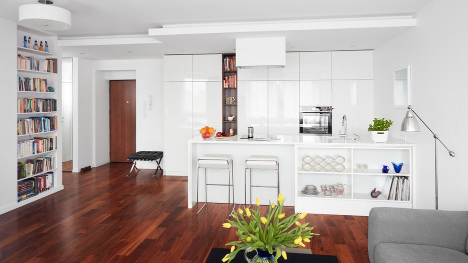 Rozwiązanie to często stosują projektanci w domach o dużej, niepodzielonej powierzchni, wyróżniając w ten sposób salon, jadalnię albo przedpokój. W małych, jednopokojowych mieszkaniach sprawdzi się do wydzielenia sypialni. Po jednej ze stron możesz przechowywać ubrania, książki lub mieć telewizyjną ścianę, drugą zaś zaaranżować jako standardową kuchnię.